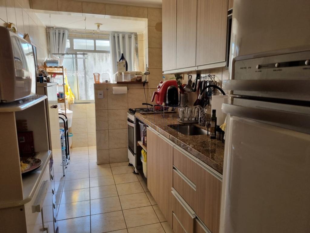 Apartamento três dormitórios, banheiro social, lavabo, sala com living 2 ambientes, cozinha mobiliada com área de serviço separada. Ficam os roupeiros dos dormitórios, split no dormitório de solteiro e ar de parede no dormitório principal.
